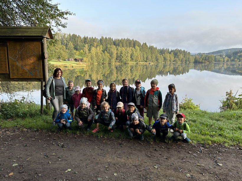 Die Kinder der 1. Klasse waren zu Gast am Bauernhof von Familie Neßlböck in Mollmannsreith.